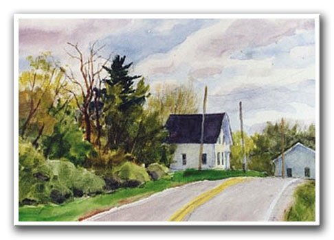 "Road Side Scene" I pass this house when I drive on 220 and one spring day it hit me the right way and I stopped and painted it.